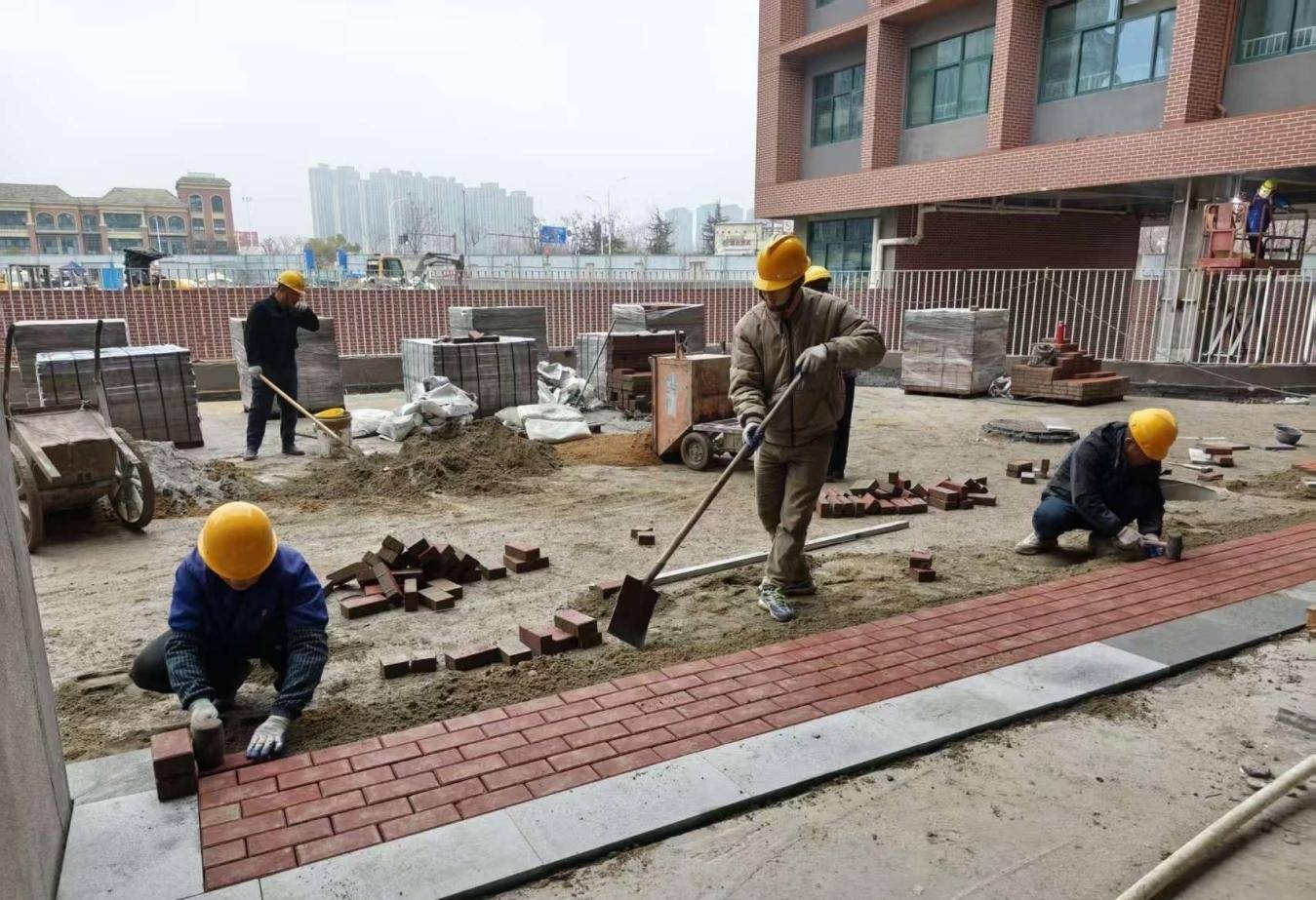 在杨林小学改扩建项目施工现场,教学楼正在推进室内装饰装修及安装工程收尾作业,室外同步开展道路、铺装、操场、绿化等配套工程施工。