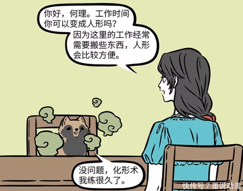 何理虽然是九月的徒弟,但化形天赋实在一般。正因为如此,何理去女娲的陶艺店面试的时候是保持着貉形态。女娲面试何理,可以看出她还是很有礼貌,而且她也很想要这一份工作。能够在女娲身边工作,对于修行也会有极大的帮助。